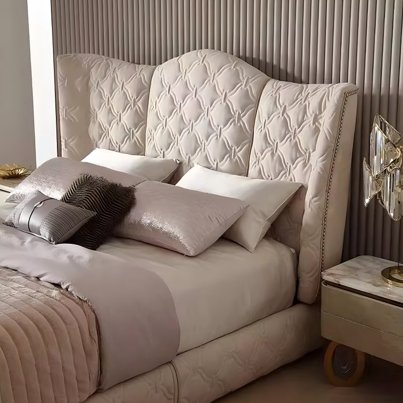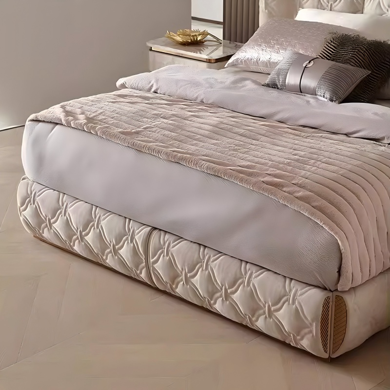 Cubierto con terciopelo de alto grado, tiene un toque delicado y amigable para la piel. La tela de terciopelo importada de Italia es a prueba de polvo y anti-MITE. Combinado con el diseño ergonómico, interpreta la estética de dormitorio discreta y lujosa.