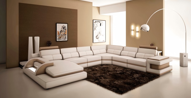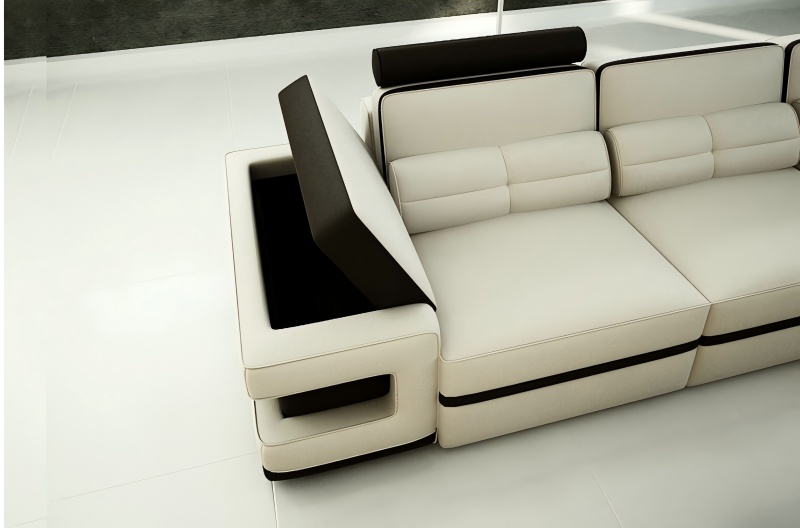 Este gran sofá de cuero en forma de L está hecho de cuero de vaca importado de grado superior con textura natural delicada y suave. Se combina con un diseño minimalista sin costuras, que muestra una textura de lujo discreta.