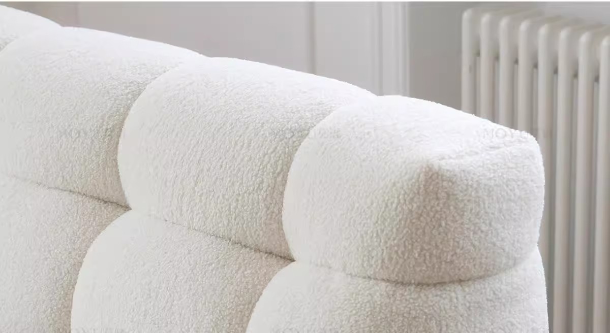 La cabecera en forma de arco + diseño de cojín completo reduce la sensación de bordes y esquinas y crea un ambiente de dormitorio cálido y perezoso.