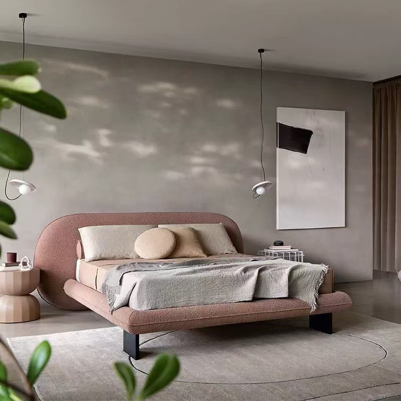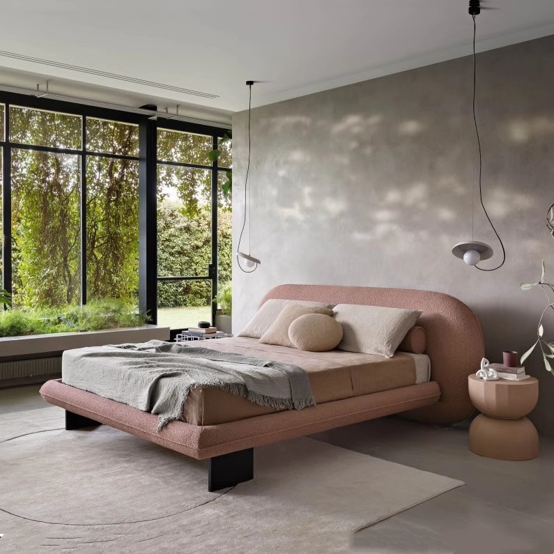 Inspirados en los tonos suaves de los postres de macarrones (como el rosa crema, el verde menta y el taro morado), combinados con una cabecera curvada y cojines esponjosos, crea un ambiente de dormitorio cálido y perezoso1.
